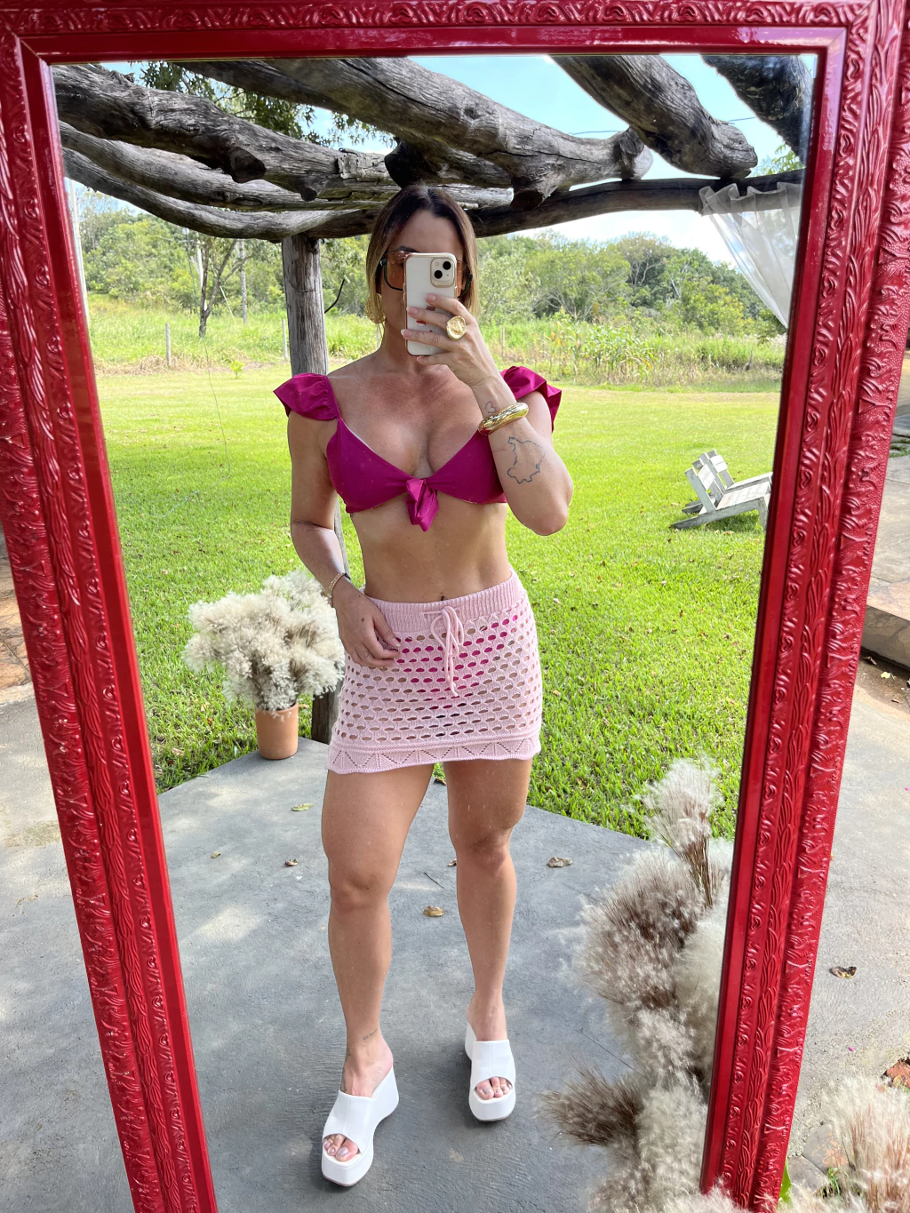 Garanta agora a sua Saída de Praia de Tricô Tati - Saia Curta Feminina e transforme seus looks com muito mais charme e sofisticação!